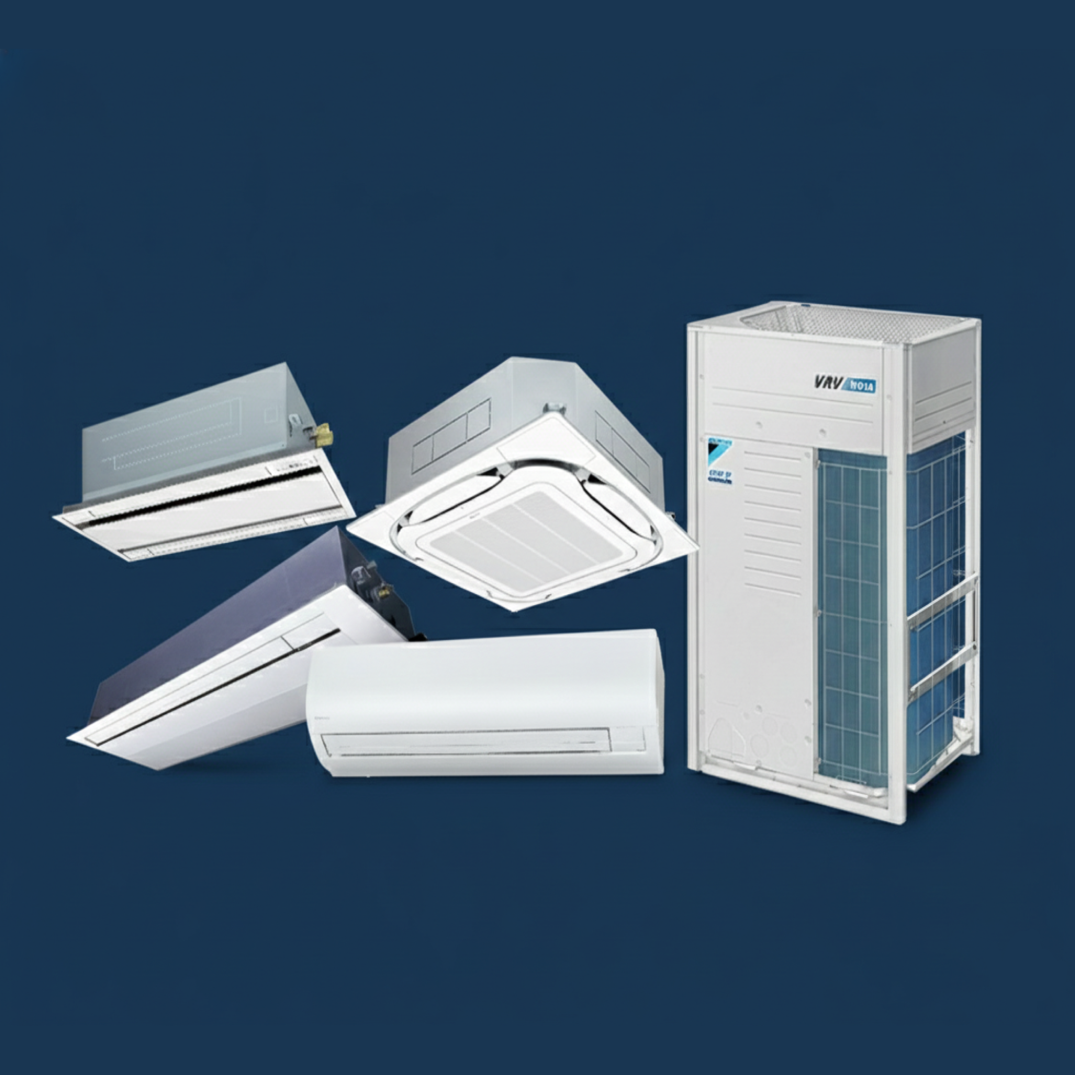 Sistemas de grande porte para edifícios comerciais, hospitais e shopping centers. Alta eficiência energética e controle individualizado.